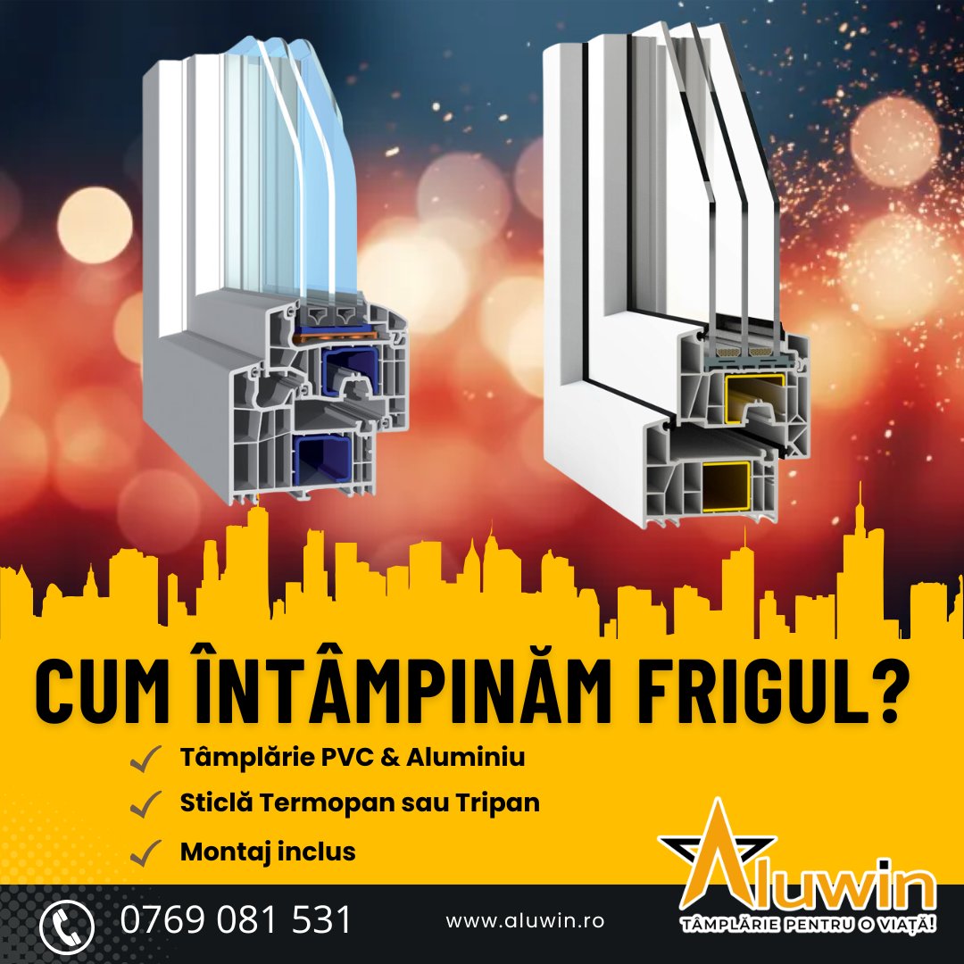 Tâmplăria Aluwin te ajută să ții frigul la distanță prin tâmplăria calculată corect din PVC sau Aluminiu, cu sticlă dublă sau triplă (Tripan), și accesorii speciale pentru zonele reci. Montaj inclus! ![]()